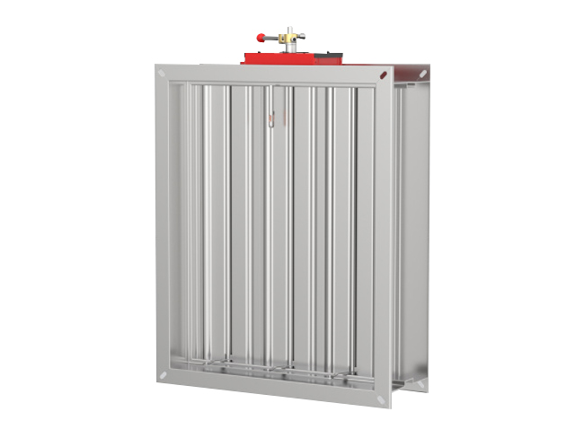 空調(diào)排風(fēng)管用通風(fēng)防火閥包括閥門架和閥板。閥板安裝在閥門架外側(cè)表面的頂部,閥板的表面固定安裝有熔斷桿,熔斷桿的一端固定安裝在閥門架的表面,閥門架的內(nèi)部安裝有固定裝置,用于在閥板密封的時(shí)候?qū)⑵滏i緊,閥板與閥門架的表面通過合頁進(jìn)行安裝,閥板與閥門架的表面垂直。